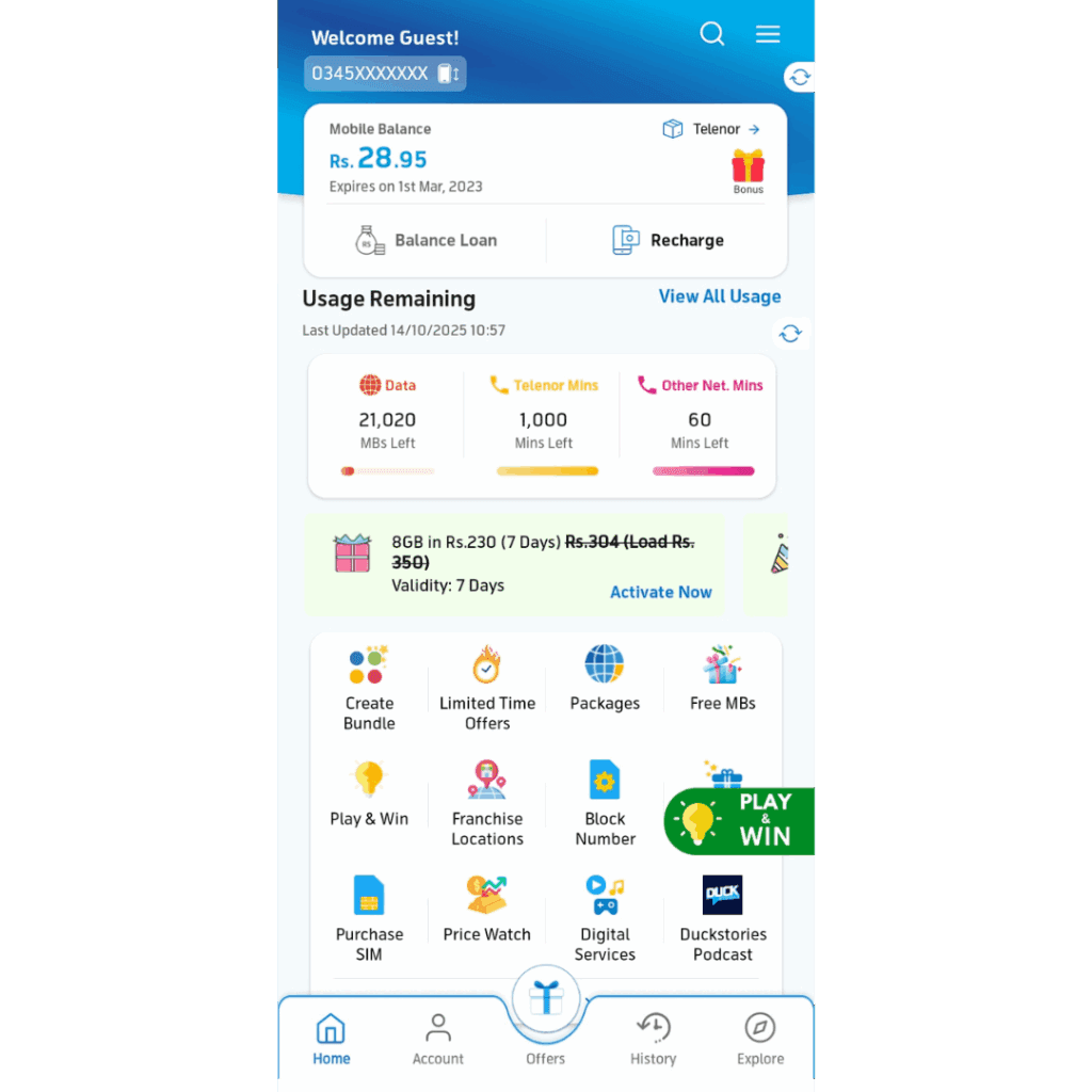 It’s Telenor’s official app that allows Telenor customers to manage their balance, bundles, and earn loyalty rewards by completing quizzes.
